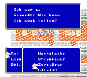 Vergleich der verschiedenen Übersetzungs-Versionen des RPG Maker 2, anhand des Ingame-Menüs. Oben: Letzter KanjiHack-Release (Version 0.9c) Mittig: Version 0.98 von MageCraft Unten: Im Internet kursierende "Version 1.05a" von MageCraft Abgebildetes Spiel: Honorable Direction 2: Enter Culex von Spoony Bard